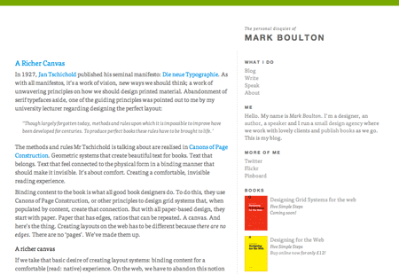 First, let’s see a site with virtually no chrome: Mark Boulton’s blog: